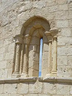Los ábsides están orientados a levante y están compuestos por dos tramos, uno semicircular al que precede un tramo recto. Se cubren con una bóveda de medio cañón en su tramo recto y de cuarto de esfera en el semicírculo. El ábside central se refuerza en su tramo recto por un arco fajón doblado, con un ligero apuntamiento, descansando sobre columnas con remate de capitel. Los paramentos verticales de los ábsides quedan divididos en tres paños por las impostas lisas que los recorren. En el ábside central se abren tres huecos en aspillera que dan luz y uno en cada absidiolo. Son abocinados y enmarcados por doble arquería de medio punto, que descansaba sobre columnillas rematadas por capiteles labrados, hoy parte de ellas desaparecidas, al igual que la labra de los capiteles. Son tres arquivoltas de medio punto, con molduras que se continúan hasta el alféizar de la ventana. En absidiolo meridional se encuentran restos de una reforma barroca del siglo XVIII, rostos de yesería que cubría su bóveda y pilastras molduradas que cubrían las columnas del arco triunfal.
