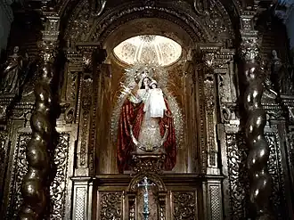 Retablo de madera dorada (1757) presidido por el Cristo del Mandato, tallado en pasta de madera por Diego García de Santana (1598)
