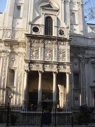 Esta iglesia es un hito en la escultura renacentista lombarda; está construida en mármol policromado.