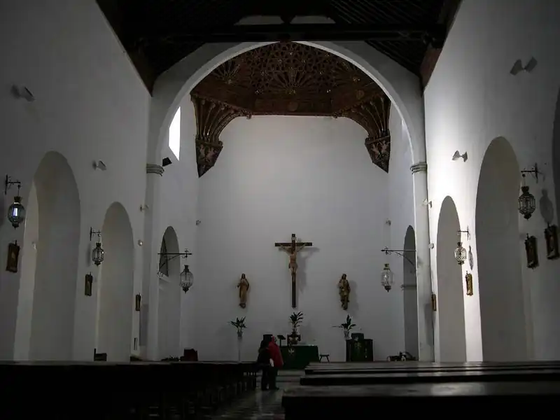 Su capilla mayor se separa de la nave central mediante un arco toral apuntado sobre pilastras góticas de sillería, destacando sobremanera en ella su cubierta solucionada por una impresionante armadura mudéjar octogonal de lazo profusamente decorada, con angelotes tallados y policromía de "candelieri", apoyada sobre pechinas aveneradas.[2]