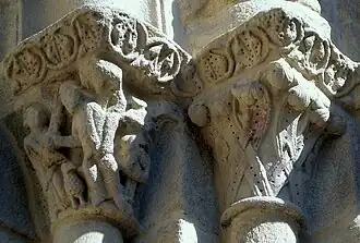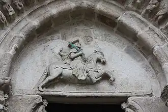 Es una iglesia de estilo románico. La antigua planta se desarrollaba en tres naves y tres ábsidas, siendo de importancia las dos puertas laterales y la puerta de la fachada principal. Es en la fachada occidental donde encontramos la portada, formada por arcos apuntados, con la imagen de Santiago Matamoros a caballo en el tímpano.