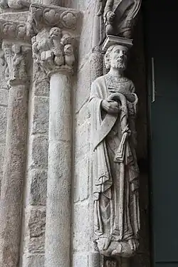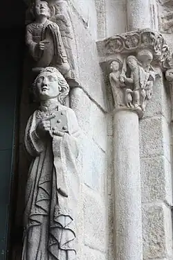 Fue construida en la segunda mitad del siglo XII, aunque sufrió posteriores reformas. Única iglesia en España que en su interior alberga a un tiempo una talla de la Virgen embarazada y otra amamantando al niño Jesús, de alto valor artístico. También incluye unas aras romanas procedentes de la Torre de Hércules del siglo II d. C.. En el tímpano de la fachada principal, del siglo XV, aparece retratado Santiago Apóstol a caballo, flanqueado por dos figuras masculinas en las jambas: Santiago a la izquierda y San Juan a la derecha.