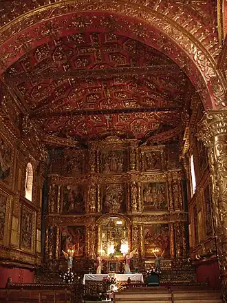 La Capilla del Rosario es una de las capillas más importantes de América, denominada la Capilla Sixtina de América; se puede observar sus columnas y detalles en fondos rojos adornados con laminillas de oro.[2]