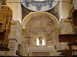 Se trata de una edificación construida en la segunda mitad del siglo XII, aunque únicamente conserva de ese período la cabecera románica, perteneciendo el resto del templo al barroco. Dicha cabecera, rectangular en el exterior y semicircular en el interior, cuenta con dos ventanas. Las tres naves que componen el templo se encuentran divididas por pilares que sostienen arcos de medio punto.[1]