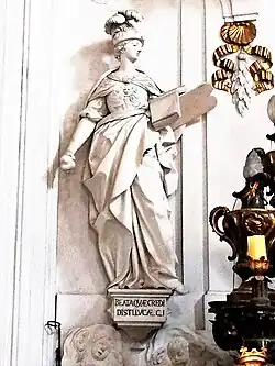 - Edículo en el subcoro con una urna relicario que contiene el cuerpo de la mártir romana Santa Teodora rematada por un fresco. Reliquia donada por el Papa Clemente XIV a Gioacchino Castello, párroco de la iglesia de Sant'Ippolito Martire en Porta Carini para el monasterio.