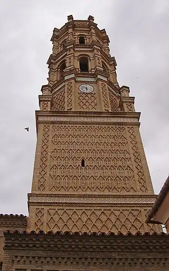 ![]() Torre de la iglesia de Villamayor (Zaragoza). | ||