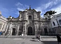 La iglesia y el convento San Ignacio de Loyola de La Compañía de Jesús de Quito, también conocidos en el acervo popular ecuatoriano simplemente como La Compañía, es un complejo clerical católico ubicado en la esquina formada por las calles García Moreno y Sucre, en el Centro Histórico de la ciudad de Quito DM, capital de Ecuador. La portada de su templo mayor, labrada totalmente en piedra volcánica, está considerada como una de las más importantes expresiones de la arquitectura barroca en el continente americano y del mundo.[1][2][3]
