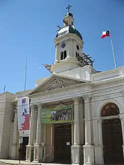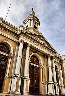 El primer templo que se construyó ahí tenía un frontón triangular y una torre central ochavada en su base, poseía una residencia y una casa de ejercicios. Debió ser demolida en 1899 debido a la gran inundación de ese año.[2] Ese mismo año comenzó la construcción del templo actual, proyectado por el arquitecto Nicanor Marambio y terminado en 1901.[1] Las obras de construcción estuvieron a cargo de Hermógenes Mardones.[cita requerida]
