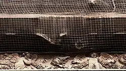 Red de seguridad en la cornisa este de la Madeleine para evitar la caída de piedras.