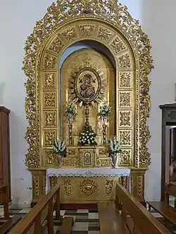 Al otro lado de la puerta se encuentra el retablo de la Virgen del Rocío, enmarcado por dos columnas salomónicas. Cobija una reproducción de la Virgen del Rocío, patrona de Almonte, realizada por Sebastián Santos Rojas, en 1936.