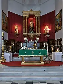 Tras la Guerra Civil, fue colocado en la cabecera un retablo que acogía la imagen de la Inmaculada Concepción, de Antonio Castillo Lastrucci de 1939. Fue desmantelado en la restauración de 1967, dejando la presidencia a una imagen de Cristo crucificado de Antonio León Ortega, actualmente cedido a la Parroquia de la Beata Eusebia Palomino. Tras la última restauración, la parroquia volvió a ser presidida por la Inmaculada de Castillo Lastrucci, en una hornacina escoltada por columnas barrocas procedentes del Museo Diocesano de Arte Sacro. También tras esta última reforma se incorporaron las pinturas de la Anunciación y el Descanso en la Huida a Egipto, obras de Mario Moya.