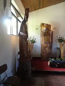 La iglesia también contiene esculturas de Santa Rosa de Lima, la Sagrada Familia y el Espíritu Santo.[7] Las esculturas en el templo están hechas de madera y representan un intento de integrar la tradición local con el cristianismo.[8]