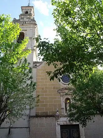 La iglesia cuenta con una torre campanario, datada del siglo XIX, con planta cuadrada y tres cuerpos decrecientes, al estilo barroco; que está situado en uno de los laterales de la fachada principal.[10]