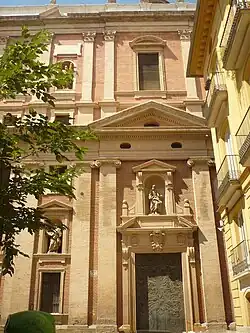 Sin embargo, la fachada de las Escuelas Pías, flanqueada por dos cuerpos levemente resaltado, tiene una composición deudora del modelo contrarreformista derivado de la iglesia del Gesù, que en Valencia alcanzó una gran difusión durante el segundo tercio del siglo XVIII.