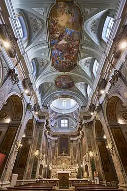 El interior sigue los dictados de la Contrarreforma, presentándose con una nave única sin transepto y el ábside coronado por una cúpula. Las decoraciones pictóricas son de importantes artistas como Alessio d'Elia y Jacopo Cestaro. En la iglesia se puede admirar el pavimento de mayólicas de 1738, obra de Donato Massa, que cubre toda la nave y lleva en su centro el emblema del Gremio del Arte de la Seda. A los lados de la entrada se encuentran dos pilas de agua bendita, raros ejemplos de Rococó napolitano, obras del artista Giacomo Massotti, autor también de la balaustrada. La iglesia alberga también esculturas de madera, conservadas en las capillas laterales. En la sacristía y en los depósitos de la iglesia se conservan valiosas obras artísticas, como un altar de madera del siglo XVIII y un trono episcopal tallado y decorado con los símbolos del Arte de la Seda.[2][3][4][5][6][7]