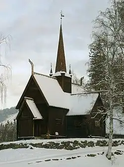 El primer edificio fue tal vez una iglesia con postes enterrados en el suelo. Ese primer templo sobrevivió hasta ca. 1200, cuando a causa de los daños del clima fue sustituido por la iglesia actual. Se ha asociado la construcción de la primera iglesia con la iniciativa de un jefe vikingo después de la peregrinación que realizó el rey Olaf II el Santo a través de Gudbrandsdal alrededor de 1021.