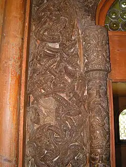 Su portal occidental es suntuoso, y le da nombre a todo un estilo de portales de stavkirke. Está formado por un dintel y dos tablones que flanquean la entrada, con columnas talladas en forma de máscaras, con fuste y capitel. Todo el portal está saturado con tallas decorativas de elementos entrelazados, típicos del arte vikingo.