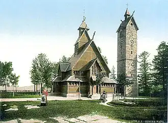 En noviembre la iglesia llegó a Stettin. Ahí, se trasbordó y por vía fluvial fue conducida a Berlín. La idea original de levantarla en Potsdam fue cambiada finalmente, posiblemente por intermediación de nobles que la querían en Silesia. Así, se decidió reconstruir la stavkirke en esa provincia prusiana, en las cercanías de un palacio real en los montes de Riesenbirge. La ciudad más cercana a ese lugar era la ciudad de Krummhübel (actualmente Karpacz). El solar fue cedido por el conde Christian Leopold von Schaffgotsch.