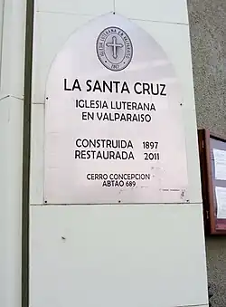 La iglesia luterana de La Santa Cruz en Valparaíso (mayormente conocida simplemente como Iglesia Luterana de Valparaíso) fue construida en 1897 en el cerro Concepción e inaugurada el 1 de enero del año siguiente con el nombre de Evangelische Kirchengemeinde zum Heiligen Kreuz (Comunidad Protestante de La Santa Cruz), convirtiéndose en la primera iglesia protestante en elevar un templo con torre y campanario en Sudamérica.[1]​ Pertenece a la comunidad de la Iglesia Luterana en Chile (ILCH).