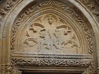 Arquitectónicamente sobresalen del conjunto las dos espléndidas portadas, especialmente la portada de San Jorge que junto con la capilla Bautismal responde a los postulados del gótico tardío, pudiéndose datar ambas de la época fundacional del inmueble.
