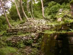 Rampa de las Tres Caras (Grupo C). - En la parte noroeste del C-3 hay dos rampas alternadas muy altas que acceden a un nivel superior, llegando a un patio plano rectangular.