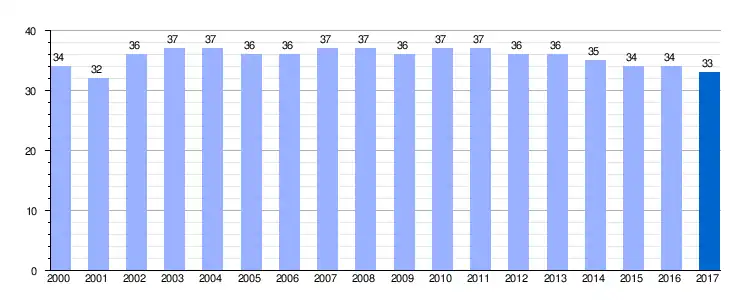 | Gráfica de evolución demográfica de Iglesiapinta entre 2000 y 2017 |