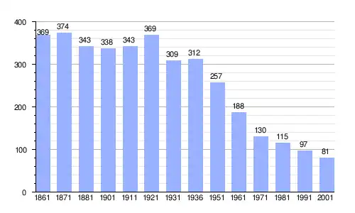 | Gráfica de evolución demográfica de Igliano entre 1861 y 2001 |
