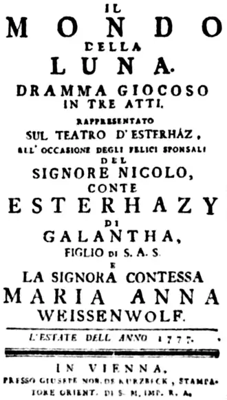 Il mondo della luna (título original en italiano, significa El mundo de la Luna, Hob. 28/7) es una ópera bufa en tres actos con música de Joseph Haydn y libreto en italiano de Carlo Goldoni. Se estrenó en Eszterháza, en Hungría, el 3 de agosto de 1777.