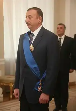 Ilham Heydar oghlu Alíyev, también referido como Ilham Alíyev (en azerí: İlham Əliyev;[2] Bakú, República Socialista Soviética de Azerbaiyán, 24 de diciembre de 1961), es un político azerí, cuarto y actual presidente de la República de Azerbaiyán desde 2003.