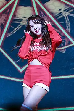 - ↑ «Main Dancer Of Girl Group Charms Audience With Her Sweet Voice On “The King Of Mask Singer”». Soompi (en inglés). Consultado el 19 de enero de 2020.