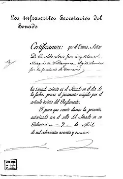 - Marqués de Villasegura, Real Decreto de 15 de noviembre de 1883 y Real Cédula del mismo.