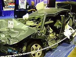 Los accidentes de tráfico generalmente implican cargas de impacto, como cuando un automóvil golpea un bolardo de tráfico, una boca de riego o un árbol, y el daño se localiza en la zona de impacto. Cuando los vehículos chocan, el daño aumenta con la velocidad relativa de los vehículos, el daño aumenta como el cuadrado de la velocidad ya que es la energía cinética del impacto (1/2 mv²) la variable de importancia. Se hace un gran esfuerzo de diseño para mejorar la resistencia al impacto de los automóviles a fin de minimizar las lesiones del usuario. Se puede lograr de varias maneras: encerrando al conductor y a los pasajeros en una celda de seguridad, por ejemplo. La celda está reforzada para que sobreviva en choques de alta velocidad y así proteger a los usuarios. Las partes de la carrocería fuera de la celda están diseñadas para deformarse progresivamente, absorbiendo la mayor parte de la energía cinética que debe ser disipada por el impacto.