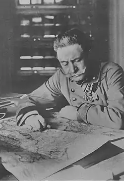 El Ejército austrohúngaro lo mandaba oficialmente el archiduque Federico,[184] pariente lejano del emperador Francisco José, desde la sede del Estado Mayor en Teschen, donde se instaló desde el principio de la contienda; en realidad, las operaciones las dirigía el general de infantería Franz Conrad von Hötzendorf,[74][185] hasta que fue relevado por Arthur Arz von Straußenburg el 27 de febrero de 1917.[186][187][188] Para entonces, el nuevo emperador Carlos había asumido el mando supremo del Ejército.[188]