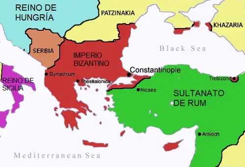 ![]() Ubicación de Imperio bizantino bajo la dinastía de los Comnenos | |||||||||||||||||||||||||||||||