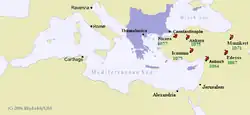 | Imperio bizantino Imperio romano de Oriente Βασιλεία Ῥωμαίων Imperium Romanum | |||||||||||||||||||||||||||||||||||||||||||