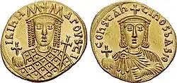 Constantino VI, hijo único del emperador León IV e Irene, fue coronado coemperador por su padre en 776. La muerte prematura de León en 780 dejó a Constantino como único emperador a la edad de nueve años, con Irene como su regente.