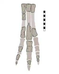 ![]() Pie derecho reconstruido, basado en el holotipo UCMP 276000 | ||