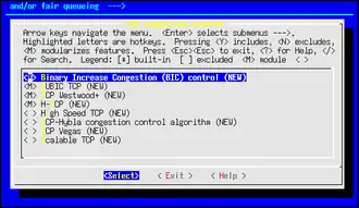 Se puede cambiar el algoritmo usado por defecto ajustando las opciones de compilación, tal como se ve en la imagen adjunta. Aunque al ser modular, también puede ser cambiado en caliente modificando /proc/sys/net/ipv4/tcp_congestion_control.