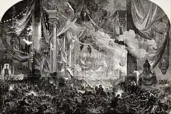 En poco más de una hora, el incendio dejó la céntrica iglesia en ruinas y, de acuerdo a una resolución judicial del 18 de julio de 1864, causó «cerca de dos mil» muertos[12] —otras fuentes señalan «más de dos mil, según la cuenta de la policía»,[15] «dos mil quinient[o]s»[36] y «cerca de tres mil»[37]—; cifra abrumadora para una ciudad que tenía aproximadamente 100 000 habitantes.[n 1]