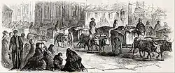 Voces se oían de todos lados. Algunos hombres pasaban por la calle gritando y gesticulando, sin sombrero; corrían mujeres de vestido abultado, pues en esa época se usaba la crinolina, sin manto en la cabeza, y con todo el pelo en desgreño.