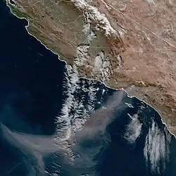 ![]() Incendio de Palisades visto desde el centro de Los Ángeles | ||