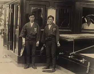 Los conductores de rickshaw que capturaron a Tsuda, Mukaihata Jizaburo (1854-1928) y Kitagaichi Ichitaro (1859-1914) fueron llamados más tarde a la flota rusa por el zarévich, donde fueron agasajados por los infantes de marina rusos, condecorados y se les otorgó una recompensa de 2500 yenes, más una pensión de 1000 yenes, que era una cuantiosa suma para la época. Fueron presentados en la prensa como héroes nacionales. Sin embargo, durante la Guerra Ruso-Japonesa, la admiración de sus amigos y vecinos se deterioró, ambos conductores de rickshaw perdieron sus pensiones, fueron acusados de ser espías y tuvieron que sufrir el acoso de la policía.