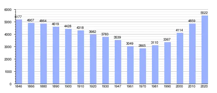 Todos los datos históricos relativos al actual municipio, el siguiente gráfico refleja su evolución demográfica, incluyendo municipios después de efectuada la fusión el 1 de enero de 1977.