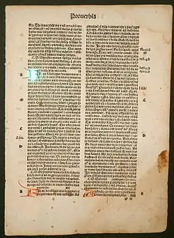 Página de una Biblia con escritura gótica impresa por J.R. Grueninger en 1497 (Estrasburgo)
