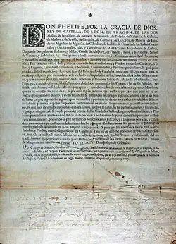 En el marco de los tratados de Utrecht (1713) que propiciaron el fin de la Guerra de Sucesión Española, el 7 de enero de 1713 Felipe V promulgó un primer indulto a los catalanes condicionado a que depusieran las armas. En este primer indulto, redactado con un duro lenguaje, Felipe V les recriminaba en primer lugar la «pertinaz continuada ceguedad con que los naturales moradores del Principado de Cataluña subsisten en faltar al cumplimiento de la obligación de vasallos míos que me tienen jurado»; tras ello continuaba concediendo el perdón de vidas y haciendas a aquellos que en el plazo de dos meses depusiesen las armas, resolviendo que en caso contrario «quedaran declarados por rebeldes y reos de lesa majestad».[3]