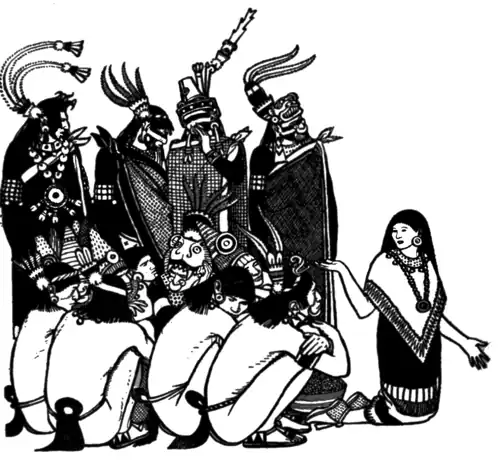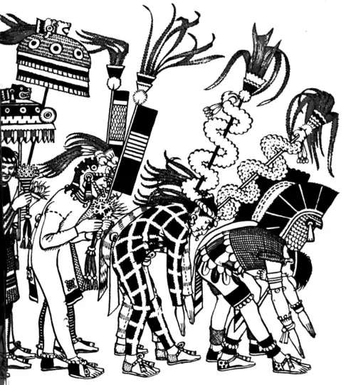 - ↑ a b * Fray Bernardino de Sahagún. (1999). Historia General de las Cosas de la Nueva España. México, Editorial Porrúa S.A. de C.V. pp. 469 a 471. 968-432-265-8.