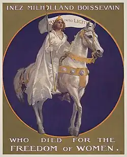 Inez Milholland Boissevain (6 de agosto de 1886 - 25 de noviembre de 1916) fue una sufragista, abogada laboralista, socialista,[1] corresponsal de la Primera Guerra Mundial y oradora pública que influyó en el movimiento de mujeres en Estados Unidos. Estuvo activa en el Partido Nacional de la Mujer y una participante clave en la Procesión del Sufragio Femenino de 1913.