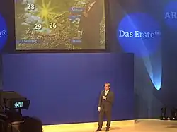 Un presentador del tiempo (también conocido coloquialmente en América del Norte como meteorólogo o locutor del tiempo) es una persona que presenta el pronóstico del tiempo diariamente en la radio, televisión o transmisiones de noticias de internet. Utilizando diversas herramientas, como mapas meteorológicos proyectados, informan a los espectadores de las condiciones meteorológicas actuales y futuras, explican las razones subyacentes a esta evolución y transmiten al público cualquier peligro meteorológico y advertencias emitidos para su región, país o áreas más grandes. No hay calificaciones básicas para convertirse en presentador del tiempo; Según el país y los medios de comunicación, puede ir desde una introducción a la meteorología para un presentador de televisión hasta un diploma en meteorología de una universidad reconocida. Por lo tanto, un presentador del tiempo no debe confundirse con un meteorólogo o un pronosticador del tiempo, el titular de un diploma en meteorología.