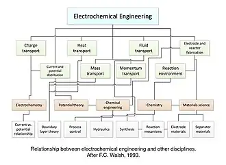 La ingeniería electroquímica considera la distribución de corriente, el flujo de fluidos, la transferencia de masa y la cinética de las electro reacciones para diseñar reactores electroquímicos eficientes.[2]