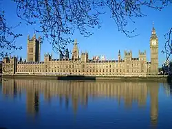 Dado que Inglaterra es uno de los países constituyentes del Reino Unido, el sistema político imperante es una monarquía constitucional con un gobierno parlamentario basado en el sistema Westminster.[22] No ha habido un Gobierno de Inglaterra desde 1707, cuando el Acta de Unión de ese año certificó la unión de Inglaterra con Escocia, creando el Reino de Gran Bretaña.[23] Antes de la unión, Inglaterra tenía su propio monarca y su propio parlamento que se ocupaban de su gobierno. Actualmente Inglaterra se encuentra directamente gobernada por el Parlamento del Reino Unido, a pesar de que otros países constituyentes han desarrollado sus propios gobiernos.[24] La Cámara de los Comunes, la Cámara Baja del Parlamento Británico, que tiene su sede en el palacio de Westminster, está compuesta por 532 miembros del Parlamento representantes de los distintos distritos electorales ubicados en Inglaterra, de un total de 650.[25]